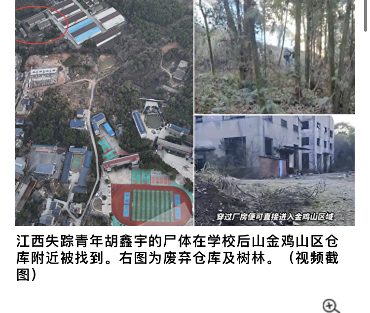 江西中学生胡鑫宇失踪三个月后,他的尸体在学校附近山上的粮仓院内找到。官方通报说,发现胡鑫宇的尸体时是"缢吊"状态。有中国媒体指出,胡鑫宇的颈部是被鞋带悬吊,但法医认为,一条鞋带悬吊百多斤的重物可能性不大。胡鑫宇的案件还有许多疑点待解。